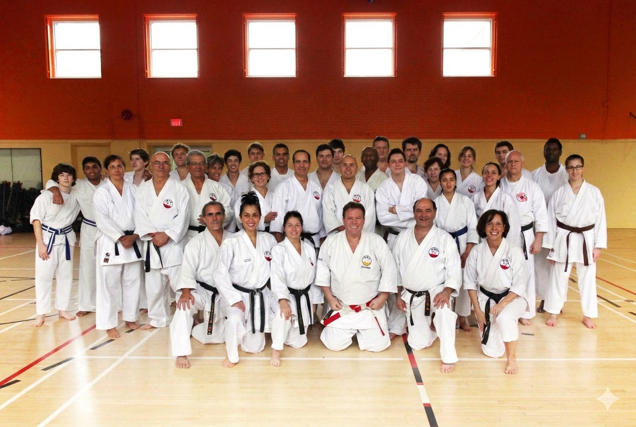 Le karaté Yoshukan s’inscrit dans une lignée dont l’enseignement s’est transmis secrètement de génération en génération, tel un héritage familial précieux. Ce n’est qu’au XIXe siècle que ces disciplines sortent de l’ombre pour intégrer les écoles d’Okinawa. Ce savoir a ensuite franchi les frontières : introduit au Japon en 1922, il atteint les États-Unis en 1946, puis s’implante au Canada en 1958, jetant les bases de notre pratique actuelle.